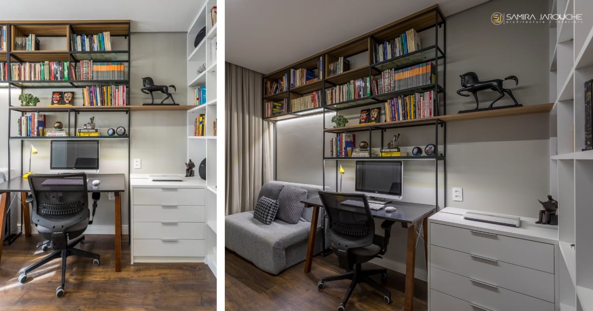 Organização e funcionalidade: Tudo em seu devido lugar! Um ambiente organizado é a chave para a produtividade. É importante usar estratégias inteligentes para otimizar o espaço de trabalho, desde soluções de armazenamento eficientes até o uso de prateleiras e organizadores. Manter tudo ao alcance das mãos, livre de distrações e com uma sensação de ordem que impulsionará sua eficiência.